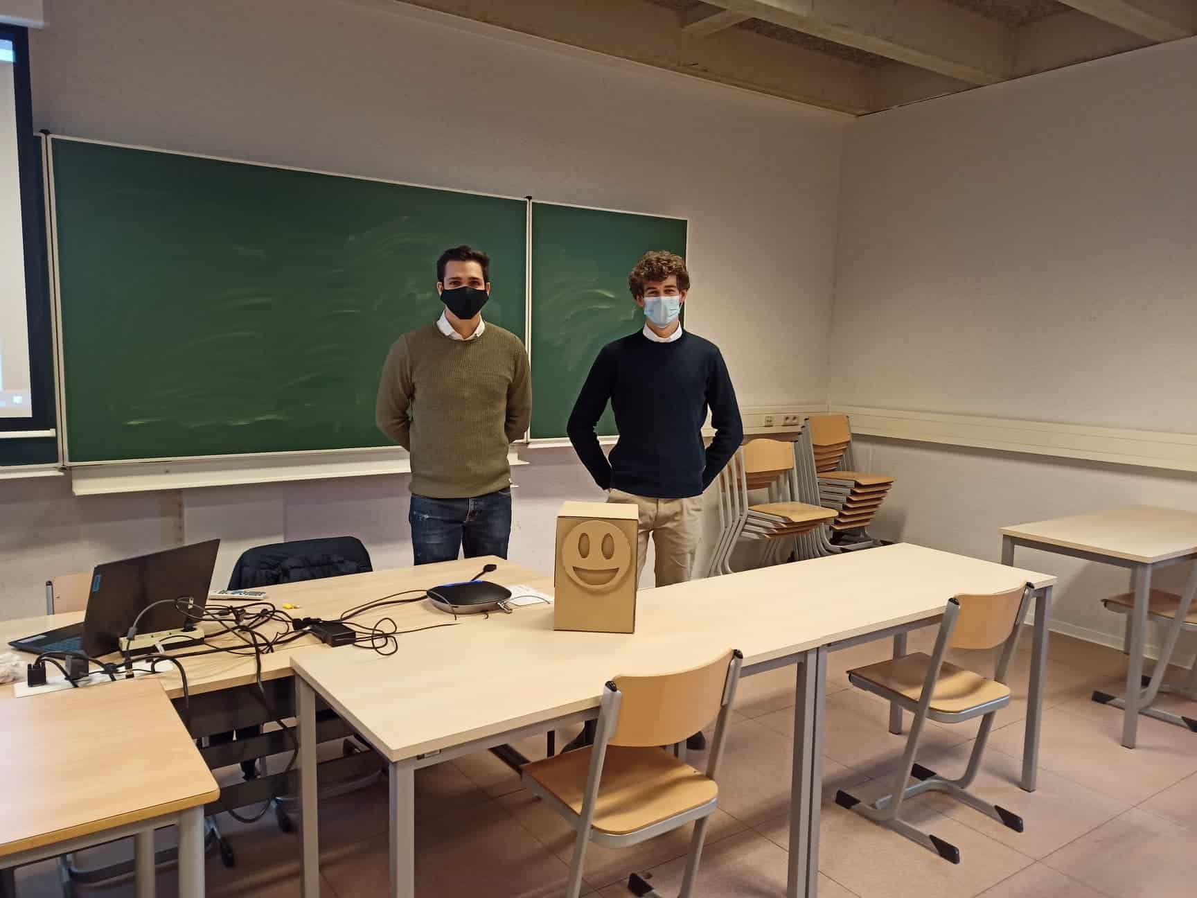 Tijdens de presentatie mochten we  het prototype voorstellen. Op de foto zie je het prototype van de Emoticon machine.